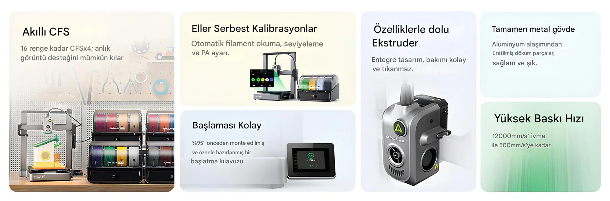 Desteklenen Filamentler: PLA, PETG, ABS, PLA-CF