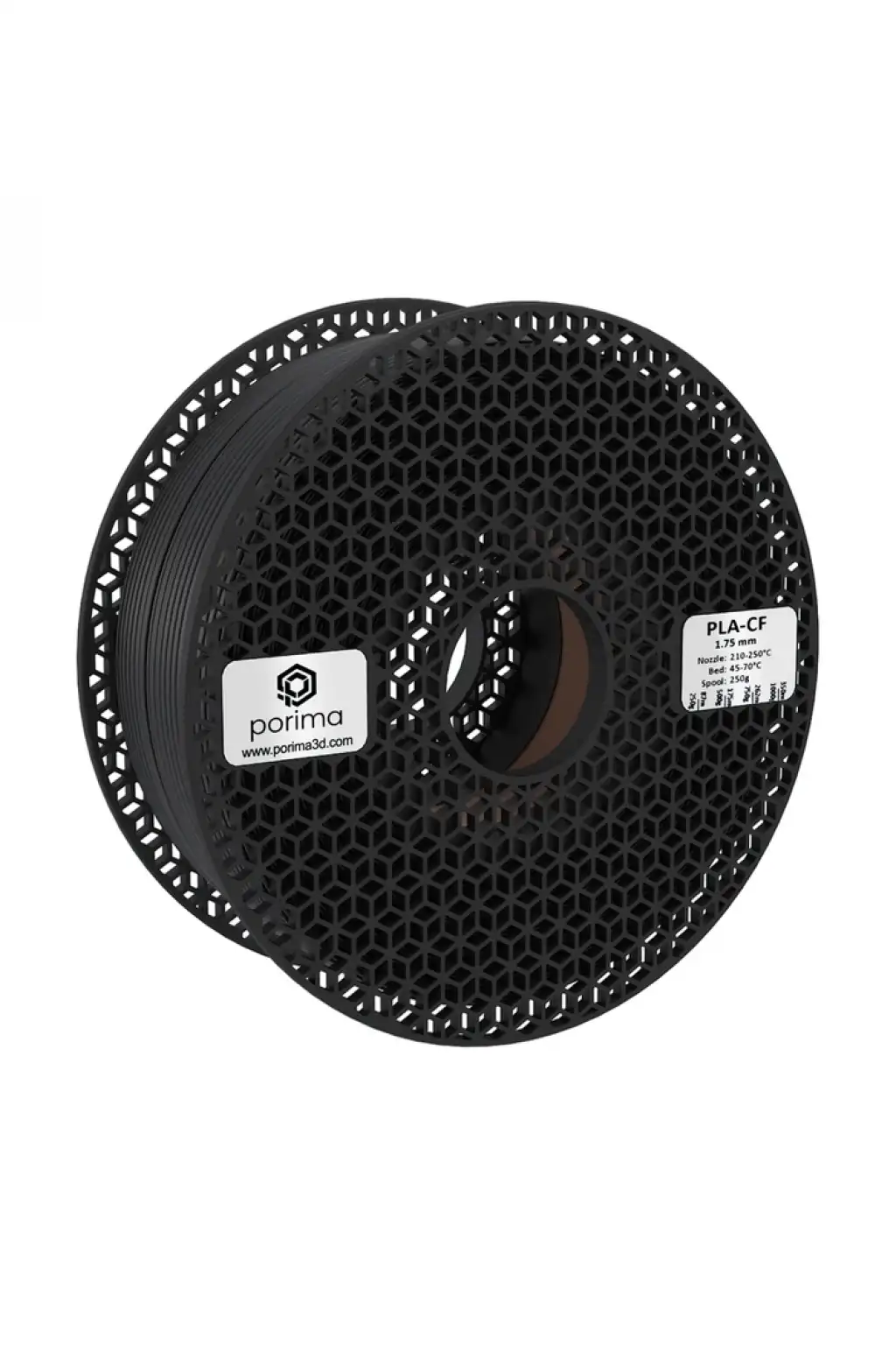 PLA/CF filamentleri, standart PLA’nın kullanım kolaylığını karbon fiber güçlendirmesiyle birleştirerek üstün sertlik ve boyutsal kararlılık sunar. Hafif ama dayanıklı yapısıyla mühendislik parçalarında mükemmel performans gösterirken, mat siyah görünümüyle profesyonel bir estetik sağlar.